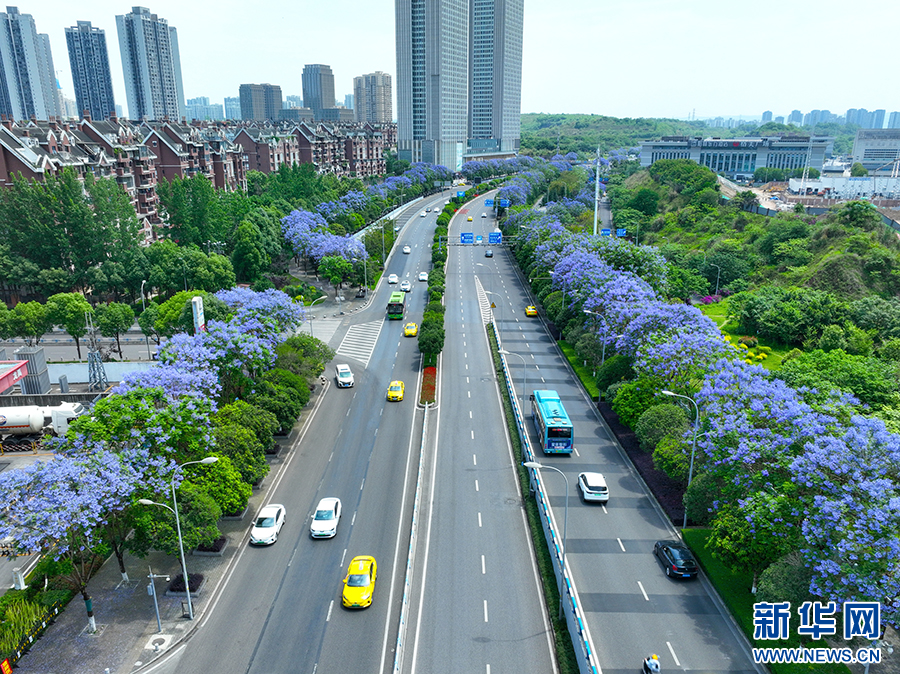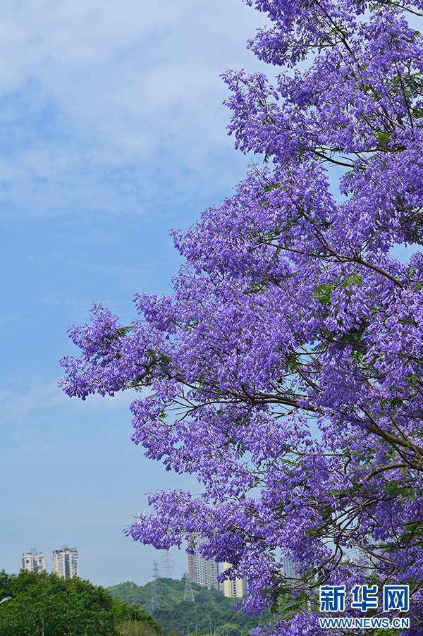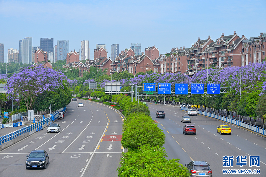 近期,随着气温升高,重庆街头的蓝花楹进入盛放期,给山城初夏带来“紫色浪漫”。