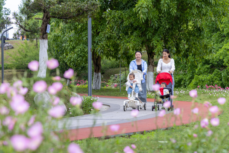 目前,南川区滨河公园已实现公园内绿色生态环保,干净整洁有序,固体废物减量化、无害化、资源化,园林垃圾回收利用率达到90%。