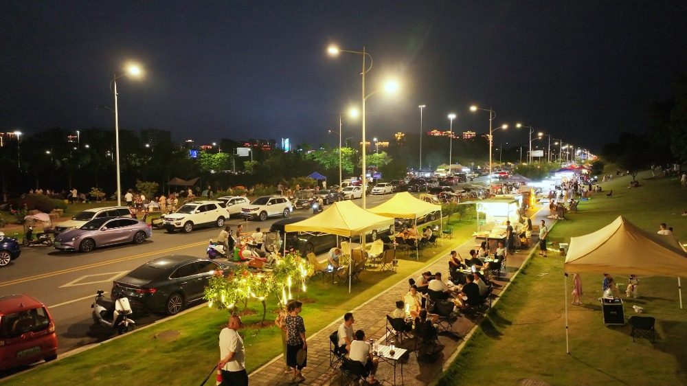 越来越多的人涌入“潮汐夜市”,创意与商机在此碰撞。不仅有经验丰富的商家拓展新市场,还有大学生、年轻人尝试创业、直播;家长带孩子野餐嬉戏,球迷聚集观赛……热闹之外,是夜经济蓬勃的生命力和民生百态的真实写照。