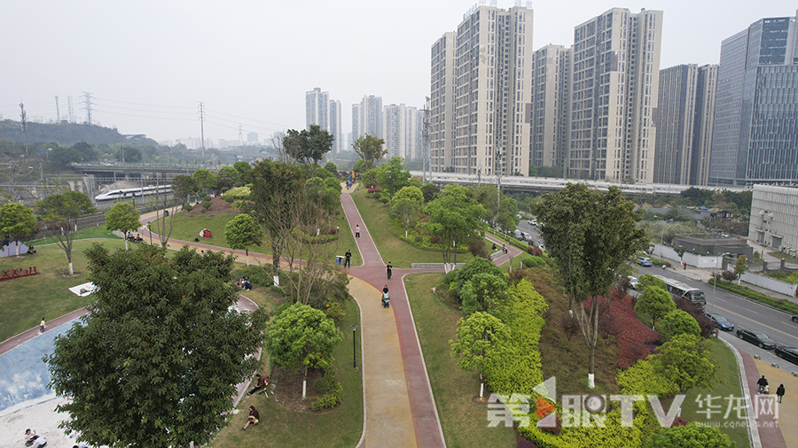 在两江新区木桃路社区公园,曾经的荒坡焕发新生,服务周边10万余居民。红黄色跑道上,休闲跑步的市民三五成群;木质座椅上,老人边看火车边议论趣事;滑滑梯沙坑里,孩童堆着城堡言笑晏晏……
