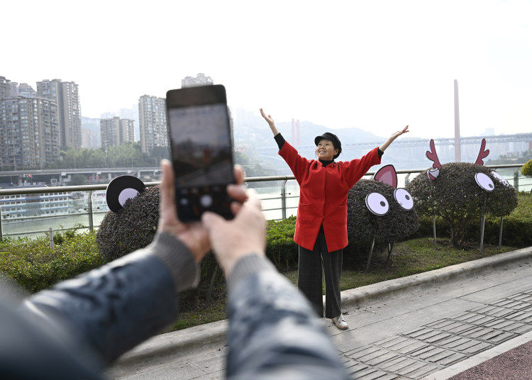 近日,重庆北滨路沿线迎来一批“萌趣新成员”:90个以球形灌木为基础打造的动物造型小品,以及8组卡通风格的便民衣帽架正式亮相,为市民的户外休闲时光增添了不少趣味与便利。