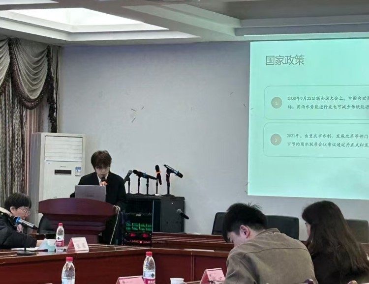 刘一阳(左二)在首届重庆市大学生城市节水创新设计大赛中进行答辩。