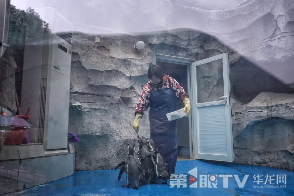 移步企鹅馆,馆内空调显示屏显示28℃加热运转,水池里也是恒温水。企鹅们有的摇摆着身体围着饲养员转悠,等待着投喂;有的则一头扎进水中,流畅地划出一道道水痕。