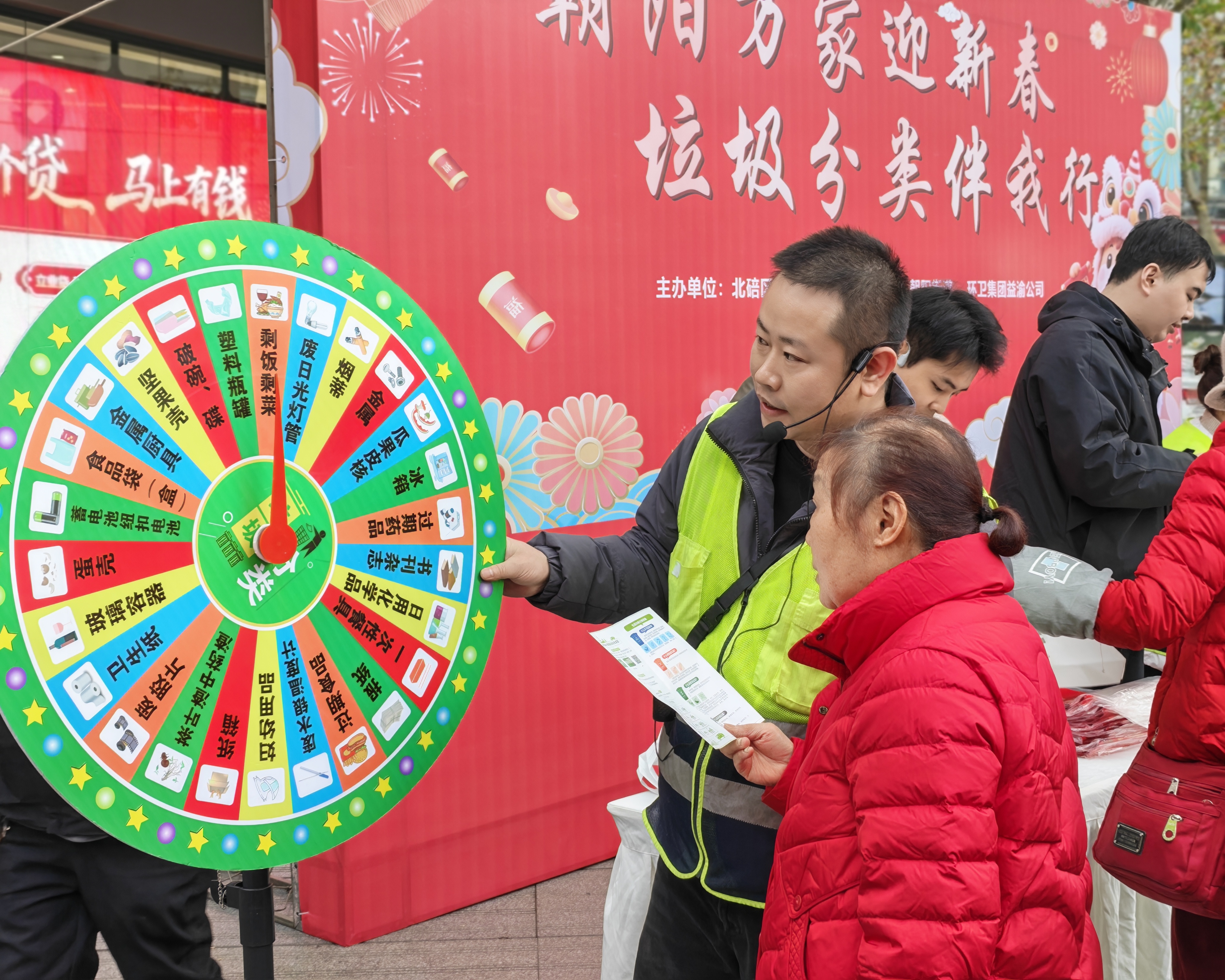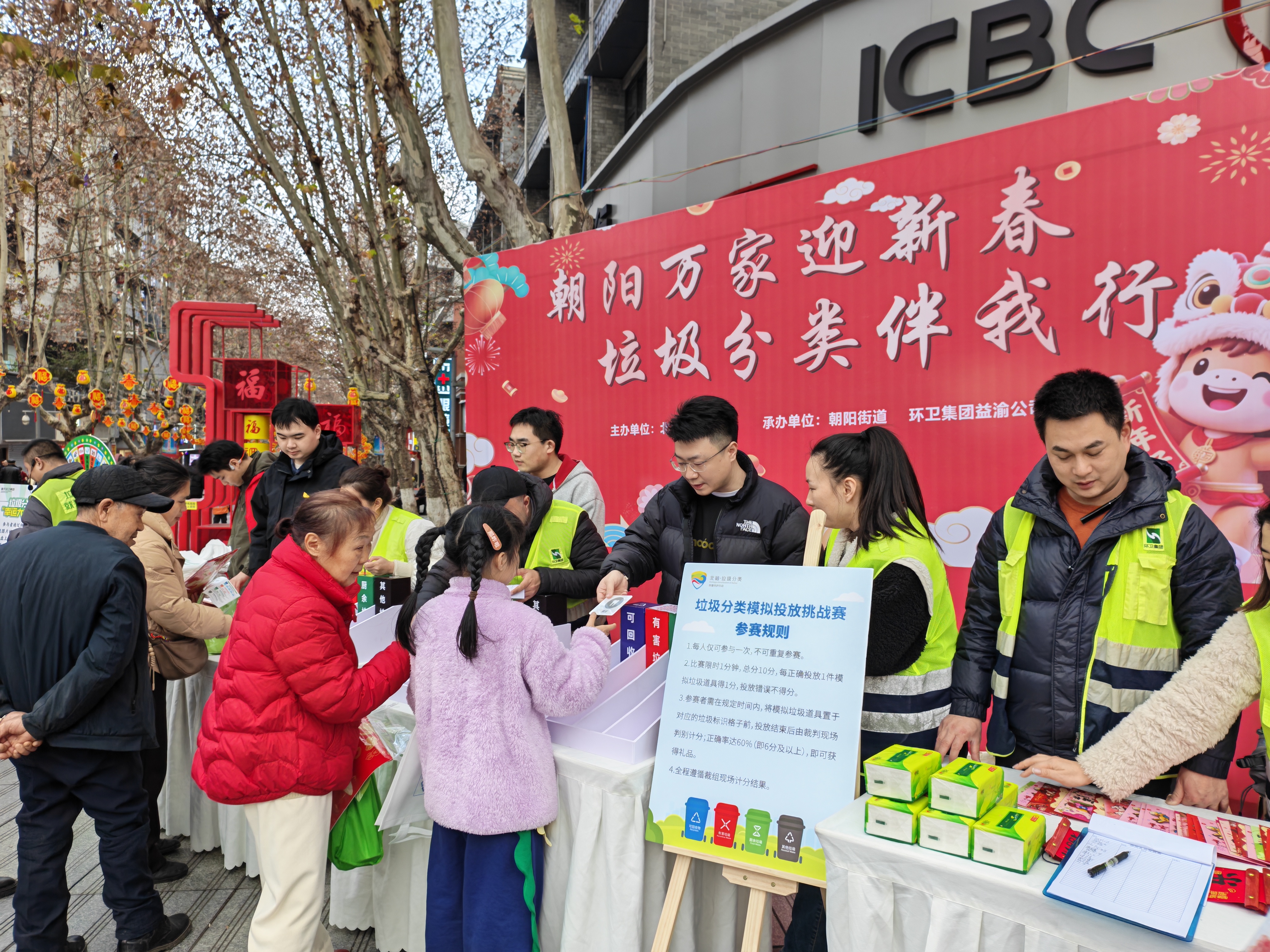 春临碚城添新景,分类践行守文明。2月10日,北碚区城市管理局、环卫集团益渝公司与朝阳街道联合打造的年度压轴活动,以“巩固增效”为核心,通过知识宣讲、趣味互动、幸运抽奖等多元形式,为系列宣传画上圆满句号,更让绿色环保理念与新春喜庆氛围深度交融,推动垃圾分类成为北碚居民迎新春的新风尚。