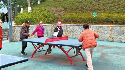 ▲居民在体育公园打乒乓球。