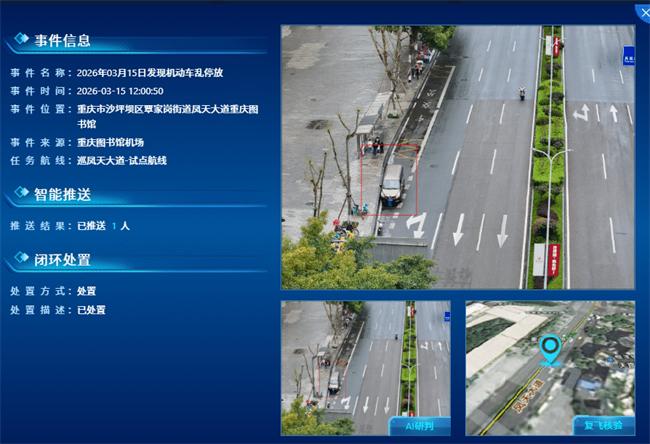 推动“数字重庆”建设赋能城市治理提升,这架无人机成为了城市“感知系统”的一部分,将城市末梢的动态实时接入三级治理中心,让城市管理从“看得见”走向“看得清”、从“管得住”走向“管得巧”。