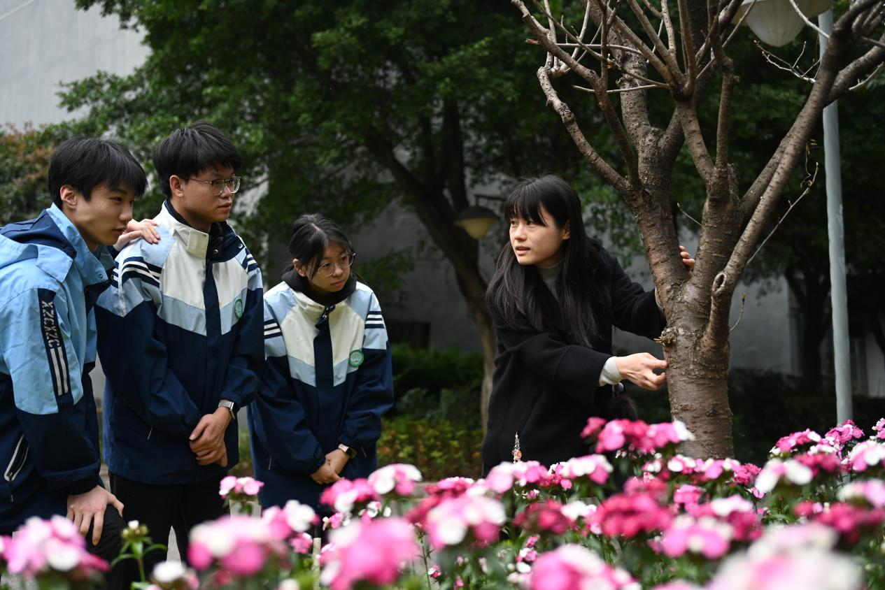 3月5日,记者走进重庆市风景园林技工学校渝新路校区,校园内春意满园、风景如画。此时,学校植保专业骨干教师周冰颖正带领学生进行现场教学,一边观察校园里的植株长势,一边讲解春季病虫害防治要点。