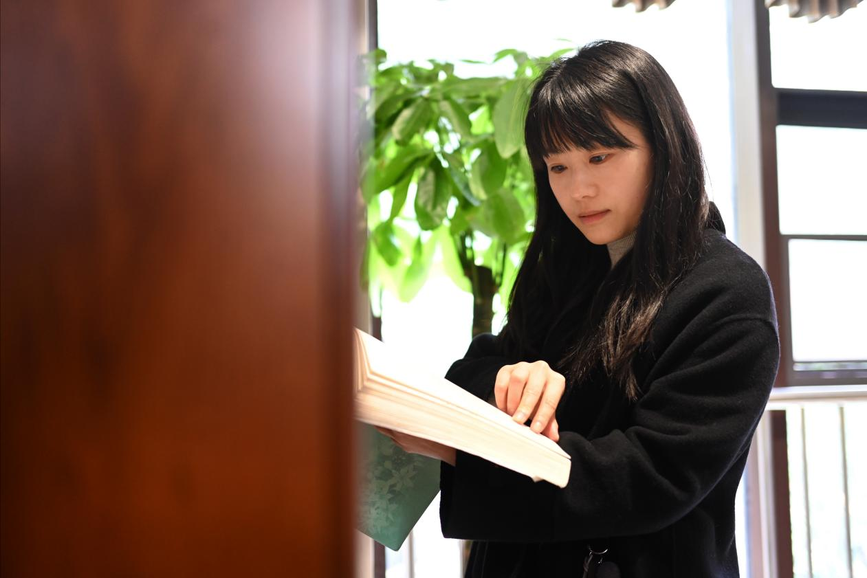 周冰颖在学校查阅专业书籍