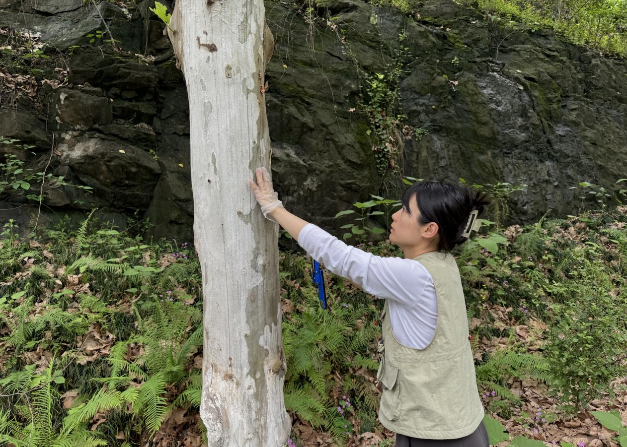 周冰颖对遭遇虫害的法国梧桐释放花绒寄甲卵卡