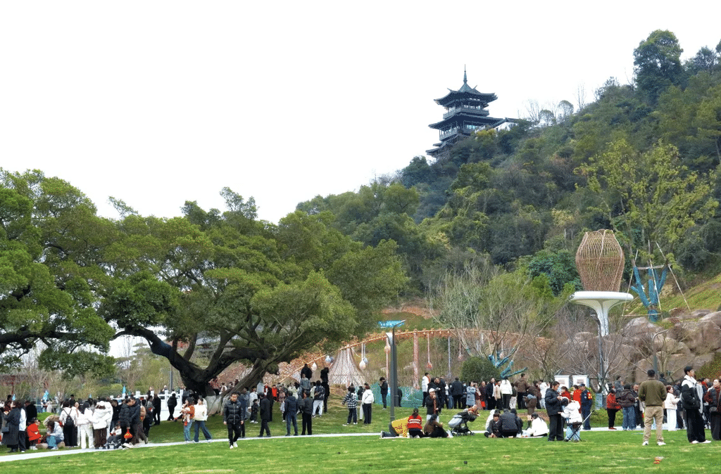 具体而言,整个园区沿地势高低分为三个景观层:“崖顶观云”可居高俯瞰全景;“半山栖野”邀游客于半山腰体验山林野趣;“江岸潮涌”则引领游客在低处感受滨江氛围。
