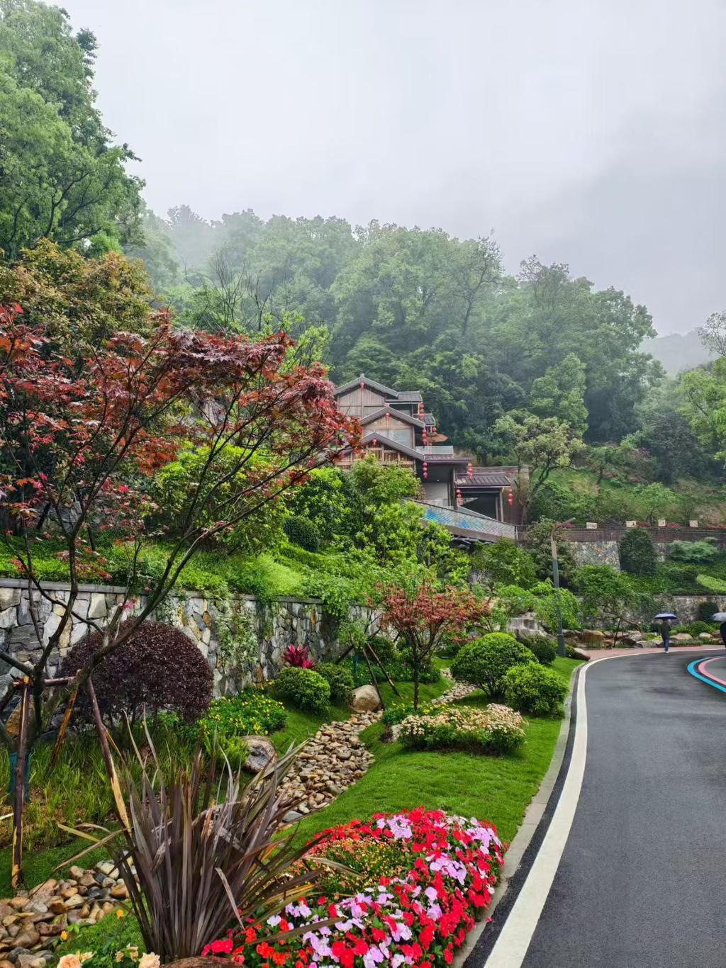 此外,重庆特色植物也得到充分展示,展园主入口重点种植花椒、薄荷等香料植物和市花山茶新优品种;坡坎崖壁嵌入多肉、苔藓等石缝植物,打造立体地质花园;叠瀑水系栽种桃树、美人梅等模仿桃源秘境;山地高点栽培海棠辅以热带植物,再现雨打芭蕉的山居情景。
