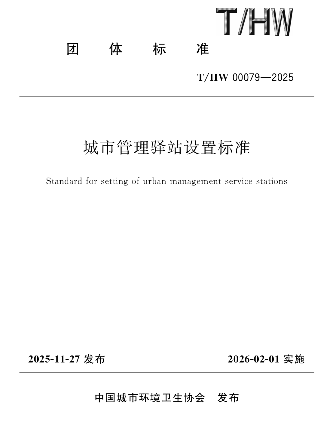2026年2月1日起,中国城市环境卫生协会公开发布的《城市管理驿站设置标准》(T/HW 00079—2025)正式实施。
